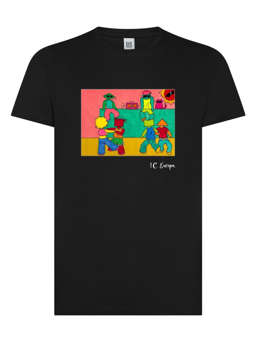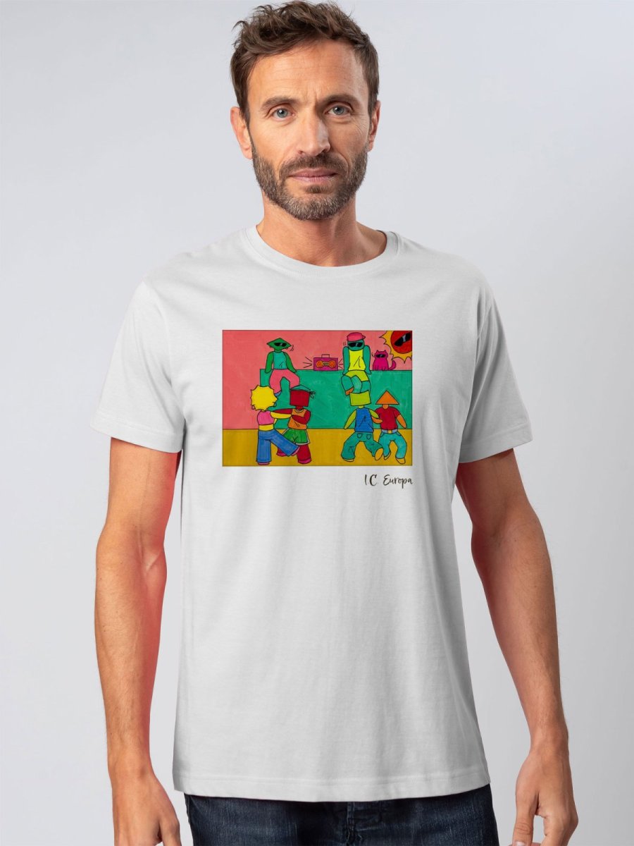 T-shirt manica corta in cotone 100% con vestibilità uomo-unisex. Stampata con il design scelto tra i bambini della scuola secondaria di primo grado "Europa".