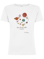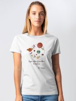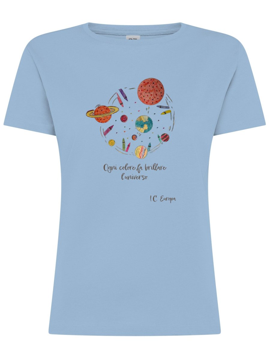 T-shirt manica corta in cotone 100% con vestibilità donna. Stampata con il design scelto tra i bambini delle scuole primarie.